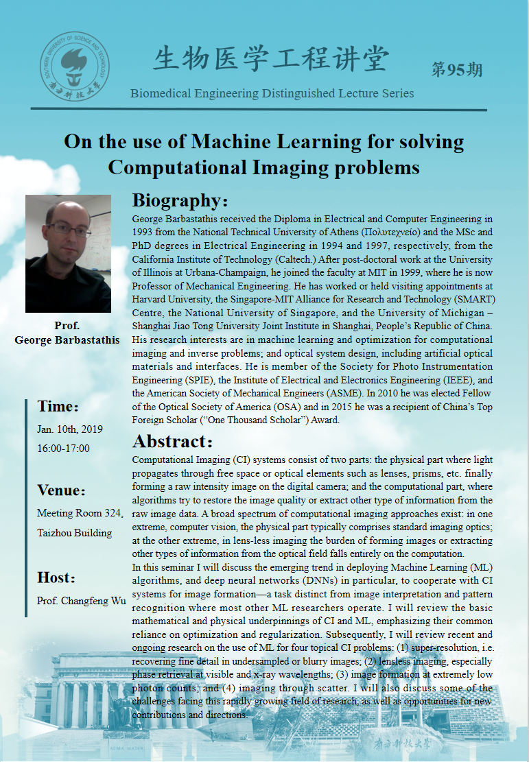 南方科技大學生物醫學工程系2026級全國統考碩士研究生招生簡章