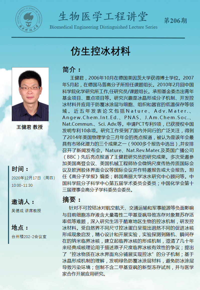 南方科技大學生物醫學工程系研究生比亞迪獎學金推薦名單公示