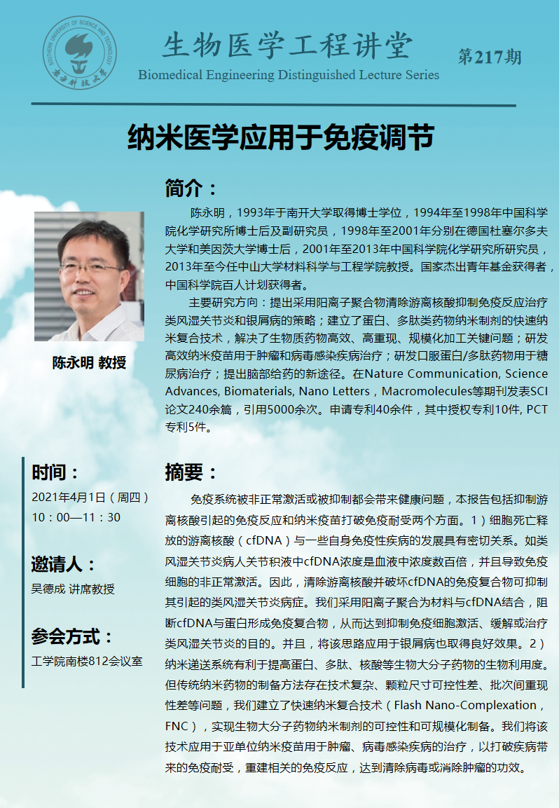 南方科技大學生物醫學工程系研究生比亞迪獎學金推薦名單公示