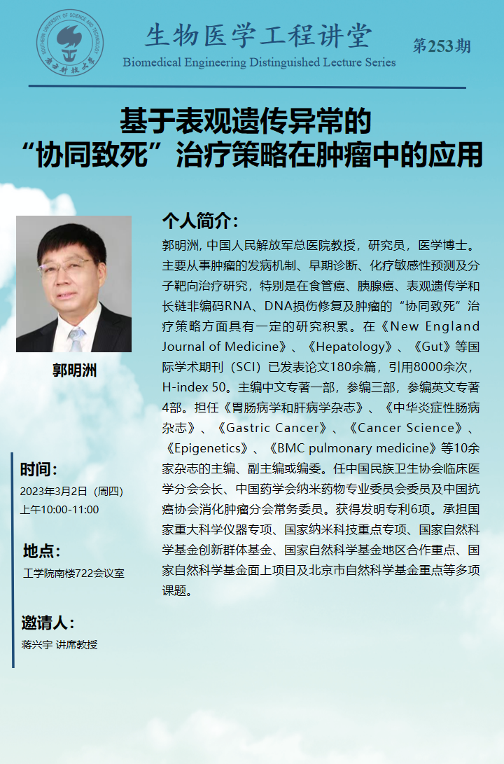 南方科技大學生物醫學工程系2026級全國統考碩士研究生招生簡章