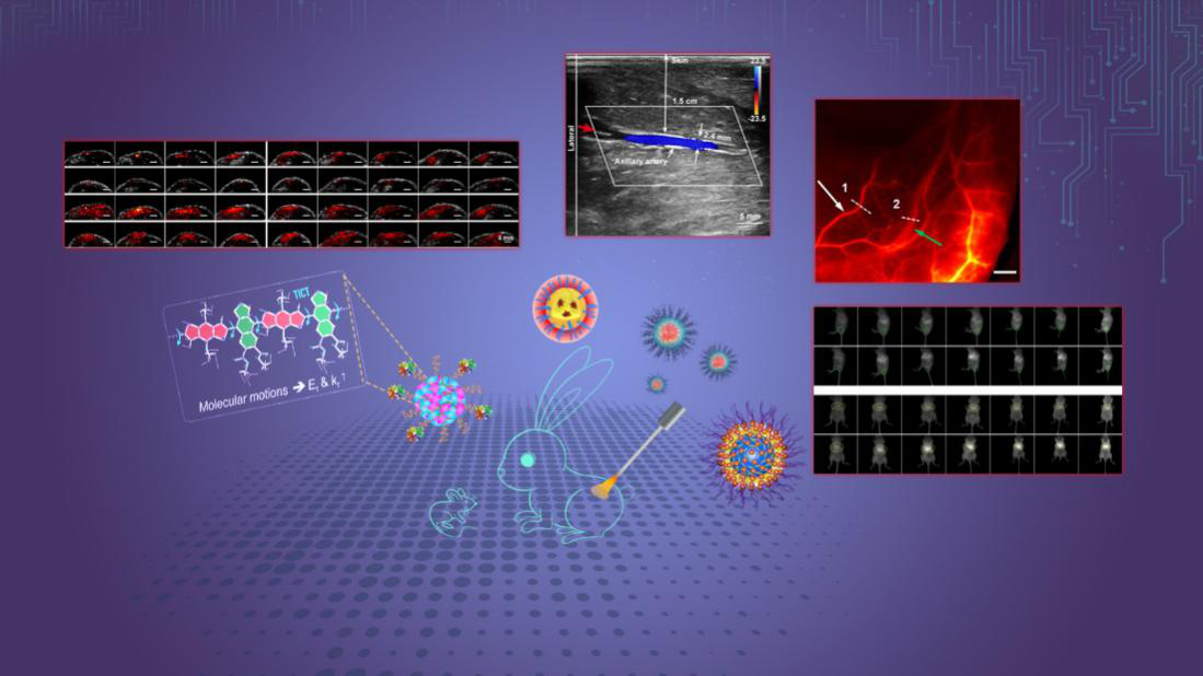 The research team designed amphiphilic AIEgens, built with a hydrophobic donor-acceptor-donor (D-A-D) core and hydrophilic polyethylene glycol (PEG) chain. These AIEgens can self-assemble into uniform nanoparticles with average sizes of ~35 nm, showing an emission maximum beyond 1000 nm and quantum yields (QYs) above 10%. The team used the bright AIE nanoparticles for multi-scale intravital vascular fluorescence imaging in the second near-infrared window (NIR-II, 1,000-1,700 nm) in mouse and rabbit models.