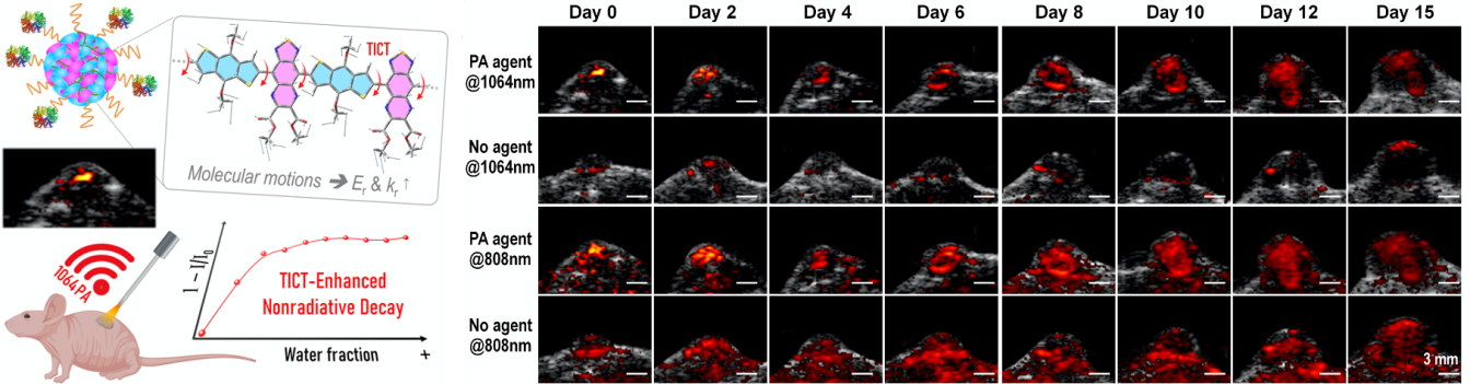 Figure 1. Improve the nonradiative transition efficiency of semiconductor polymers to achieve long-term real-time monitoring of tumor growth via NIR-II photoacoustic imaging