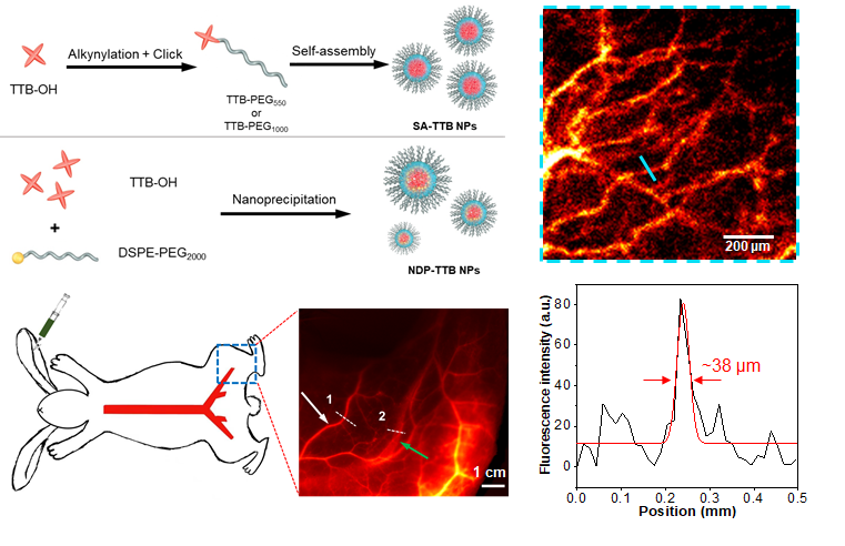Figure 2. Self-assembly strategy to prepare aggregation-induced luminescence nanoprobes to achieve multi-scale NIR-II vascular imaging